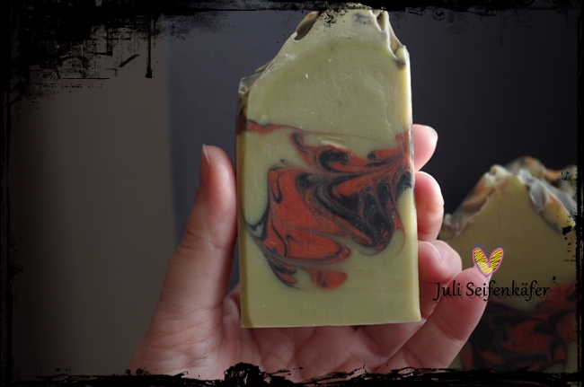 Die Seife wurde zügig fest und schneidbar und hat eine tolle Haptik. Nicht glatt, irgendwie rau.