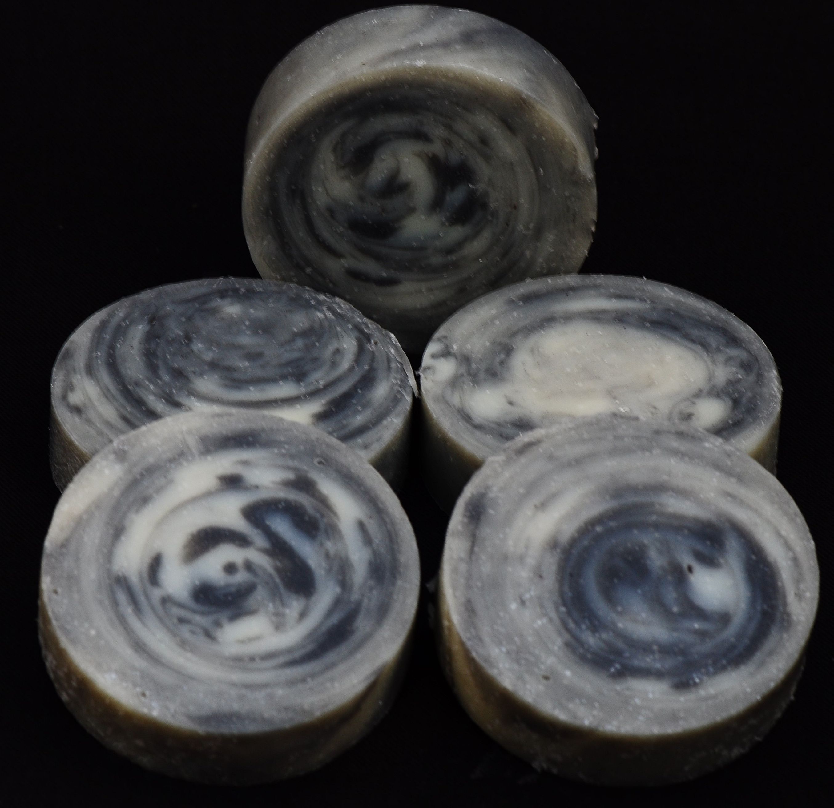 Leider ist sie nicht so geworden wie ich sie mir vorgestellt habe, mal wieder zu viel Farbe in Form von Schiefermehl hineingebracht wollte es nur dezent einsetzen aber so ist sie nun mal geworden, eigentlich wollte ich sie Harmonie nennen auch wegen ihrem Duft aber nun widme ich sie meiner Lieblingskatze Maxl der angefahren wurde und in meinen Armen starb, er war ein Wirbelwind und die Seife sieht wirbelig aus.