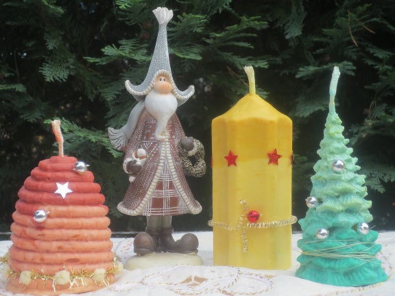zum Fest habe ich mir was besonderes ausgedacht...da ich auch Wachskerzen gieße aber nicht immer das selbe schenken mag...habe ich meinen Formen zweckentfremdet und Seifen in Form einer Kerze gemacht...."oh-Ton"...sie brennen natürlich nicht...welch Überraschung