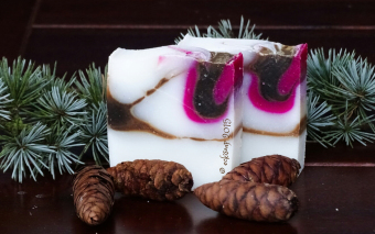 sie ist mit 7% überfettet und der braune teil ist kaffeeseife.
