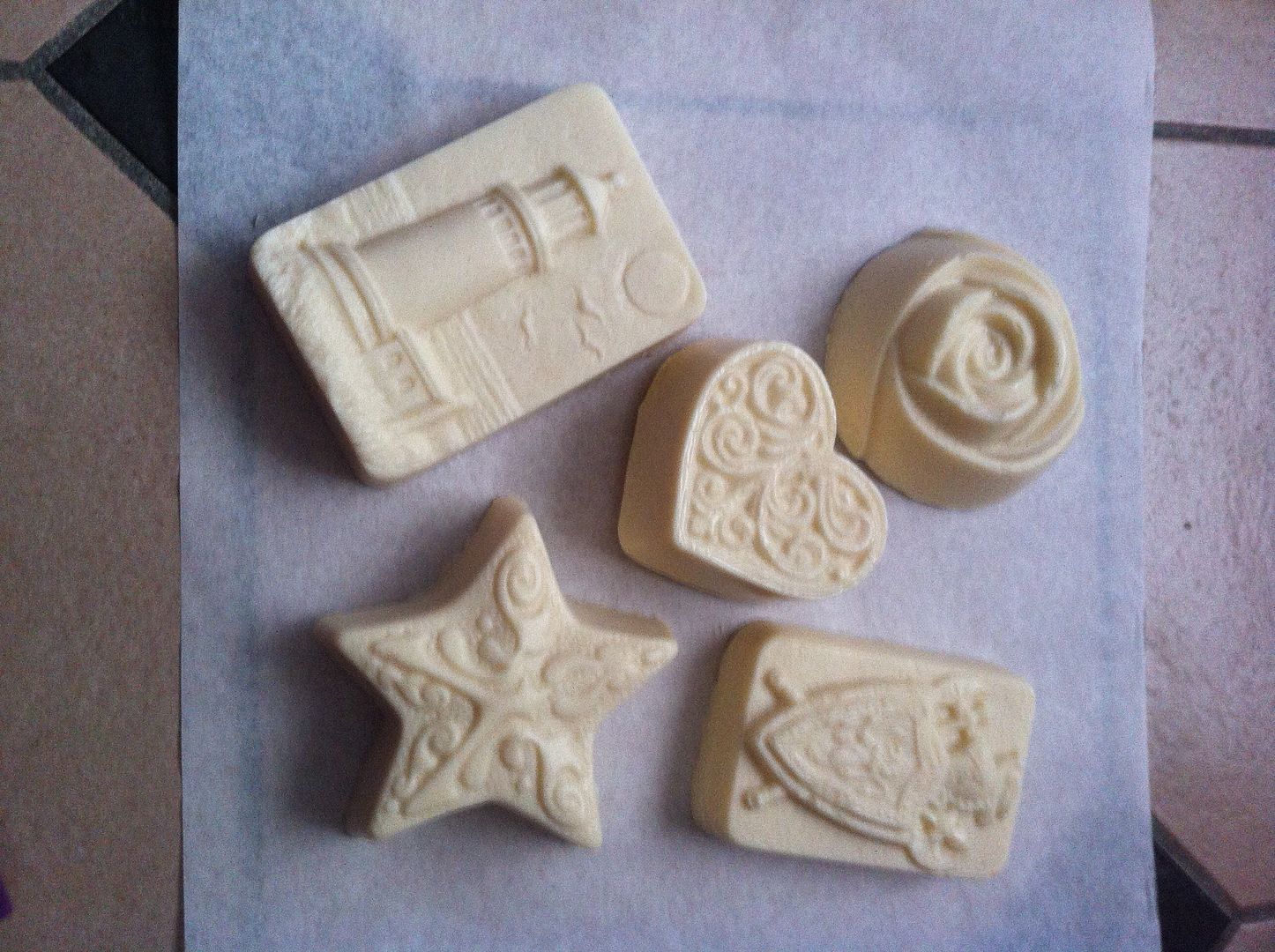 Der Leuchtturm ist für eine Kollegin, die keine PÖ verträgt und daher unbeduftet, der Rest hat Nevonia abbekommen. Für die helle Farbe habe ich diesmal ein wenig weiße Tonerde in den Leim gegeben.