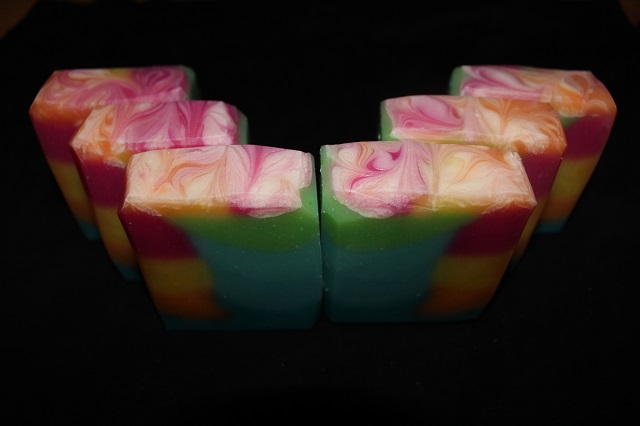 Mir hat es riesig Spaß gemacht und ich werde es bestimmt noch mal probieren und mit dem Ergebnis bin ich super zufrieden (und das Bilder knipsen hat besonders Spaß gemacht). Verseift habe ich Schmalz, Kokos, Reiskeim, Haselnuss und Bienenwachs, beduftet ist sie mit Juzu. Das Rezept werde ich garantiert nochmal sieden, die Seife hat eine ganz tolle Haptik.