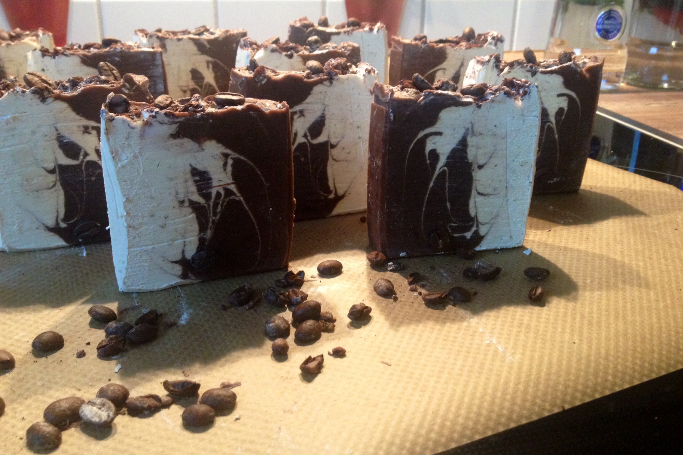 Seit einer Woche warte ich auf den heutigen Tag, an dem ich nun ENDLICH dazu gekommen bin meine vorletzte Woche gesiedete Kaffeeseife auszuformen und zu schneiden. Ich hatte schon die Befürchtung dass sie mir beim schneiden bricht weil ich mit dem ausformen solang gewartet habe, aber es ist alles gut gegangen und sie gefällt mir sehr für meine erste Kaffeeseife, und ich bin ein bisschen Stolz drauf
